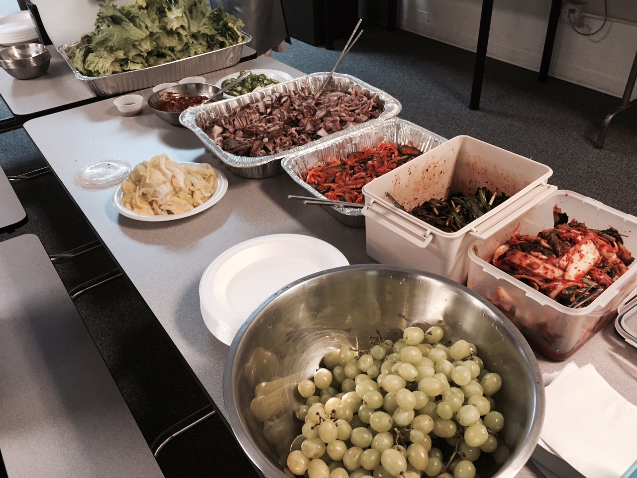 유영희 성도님께서 정말 화려한 점심을 준비해주셔서, 지난 토요일 체로키 단기 선교팀 모임이 함께 모여 정말 배불리 먹었습니다. 유영희 성도님, 진심으로 감사드려요!!! 저기에 보이는 음식들은 모두 손수 준비해주셨어요. 특히 족발~!!!! 단백질 보충 좀 했습니다. 그리고 하주야,,, Happy Birthday!!! 하주의 생일은 6/20일 입니다. 하나님의 축복된 자녀로 무럭무럭 잘 성장하길...축복해요!