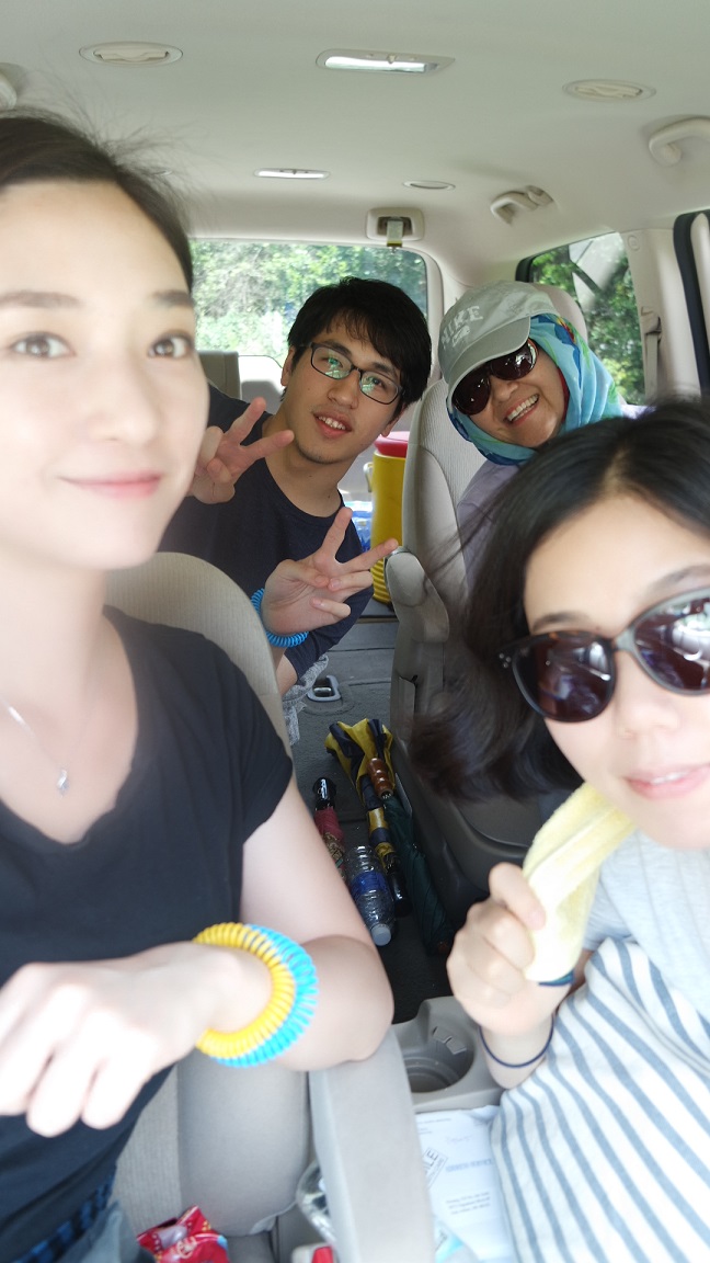 점심을 먹고, 노동을 하기 위해 Work Site로 향합니다. 가는 차안에서 서로 화이팅하며 찰칵 >_<
