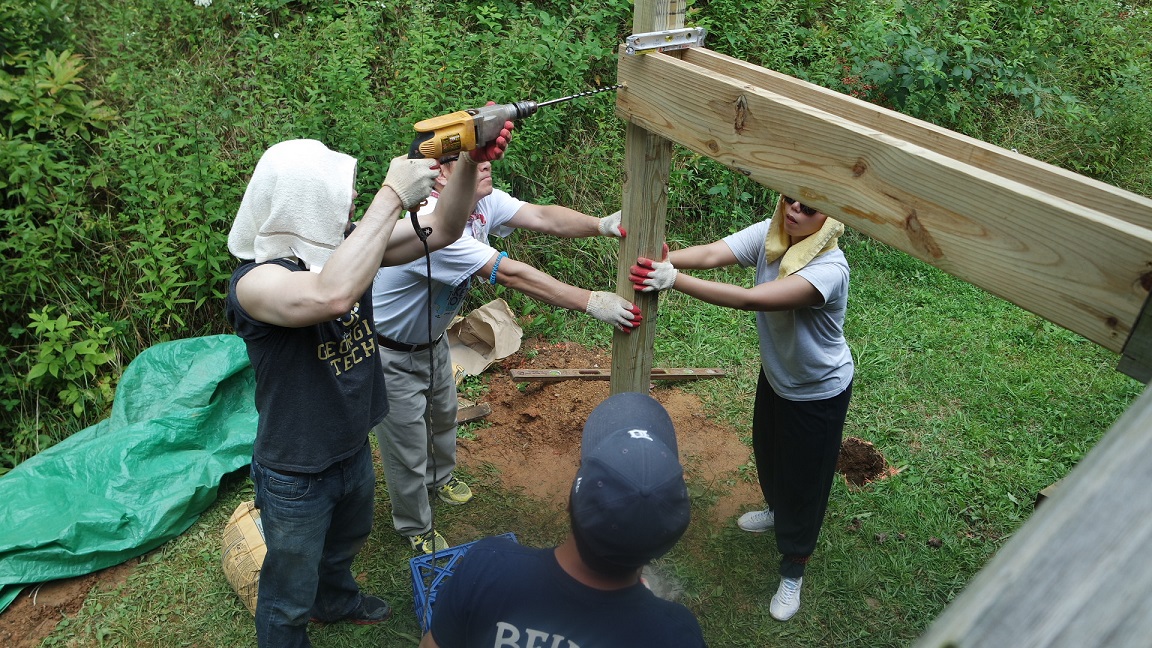 어제 팠던 홀에 나무를 박은 후에 이를 고정하기 위해 드릴로 드득드득... 돌리는데, 저 불끈 불끈 근육의 주인공은 누구일까요???