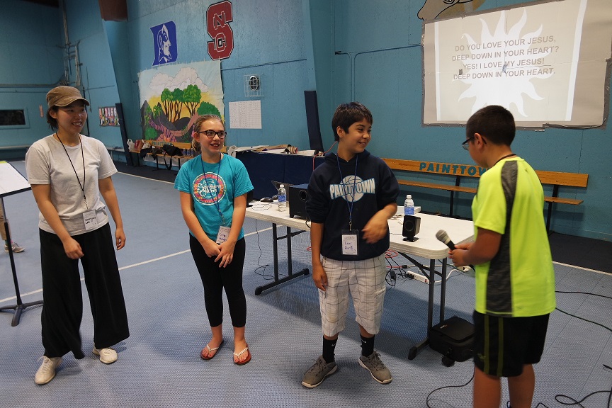 아이들이 앞으로 나와 마이크를 잡고 찬양을 합니다.