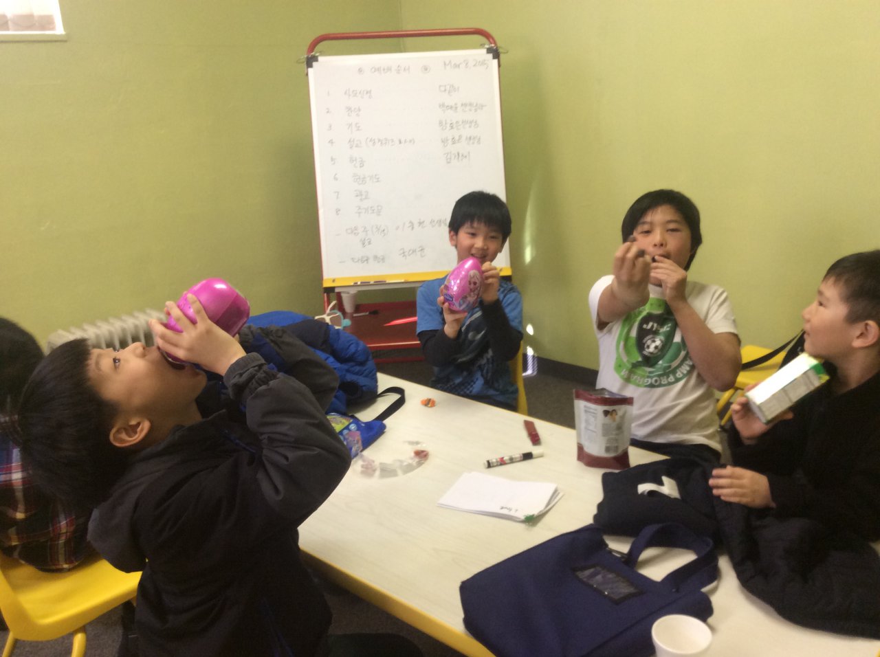 지난 3월 초에 찍은 주일학교 예배입니다. 이 날은 성경퀴즈도 하고 마침 예영이 생일날이기도 했지요.