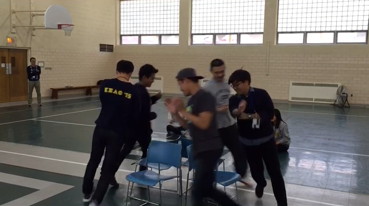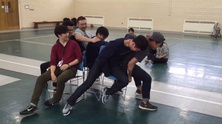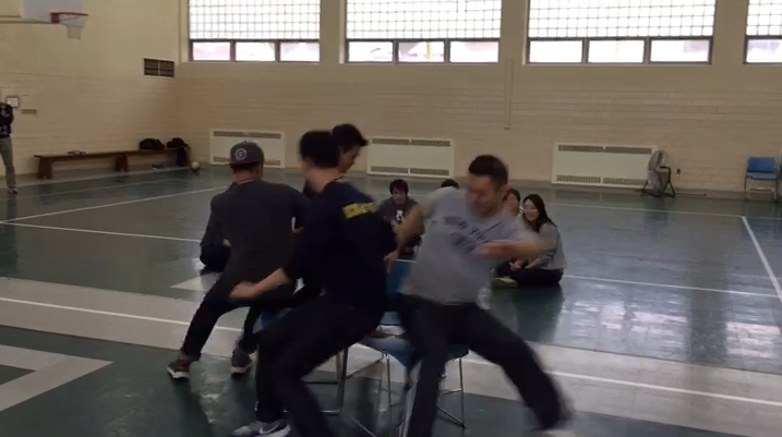 후아! 역시 남자들이라 그런가 승부욕이 장난아니네요! 의자 하나를 놓고 몸싸움을 벌입니다!!