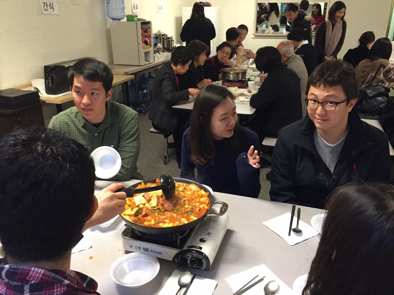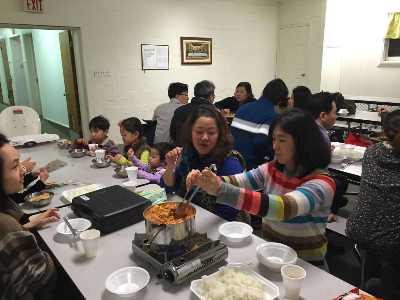 크리스마스날 예수님의 태어나심을 기념하며 예배 후에 맛있는 부대 찌게와 함게 즐거운 시간을 보낸 친교 시간 이었어요!