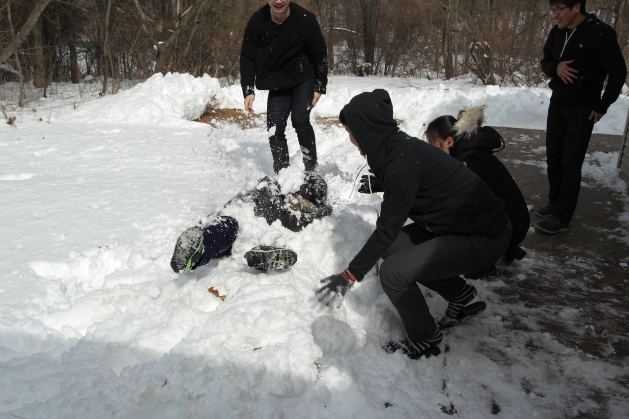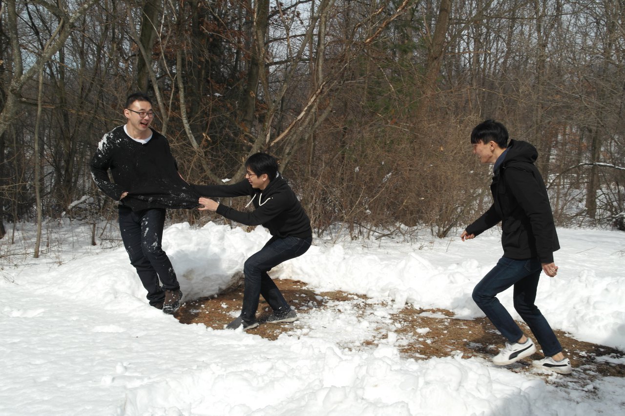 한 등치 하시는 익큐트 형님을 눈밭에 빠트리려는 동생들의 노력이