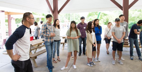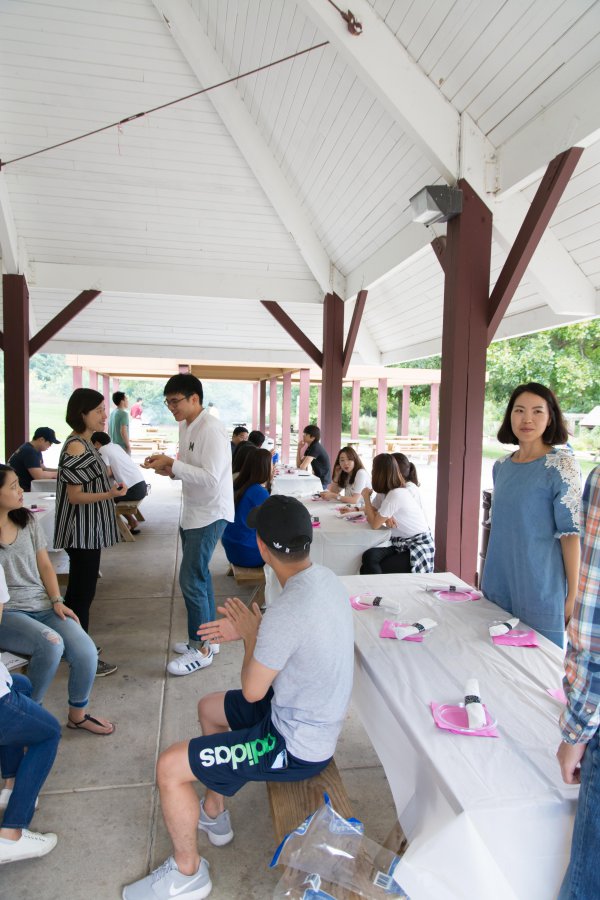 즐거운 환영 BBQ 파티를 가졌어요.
